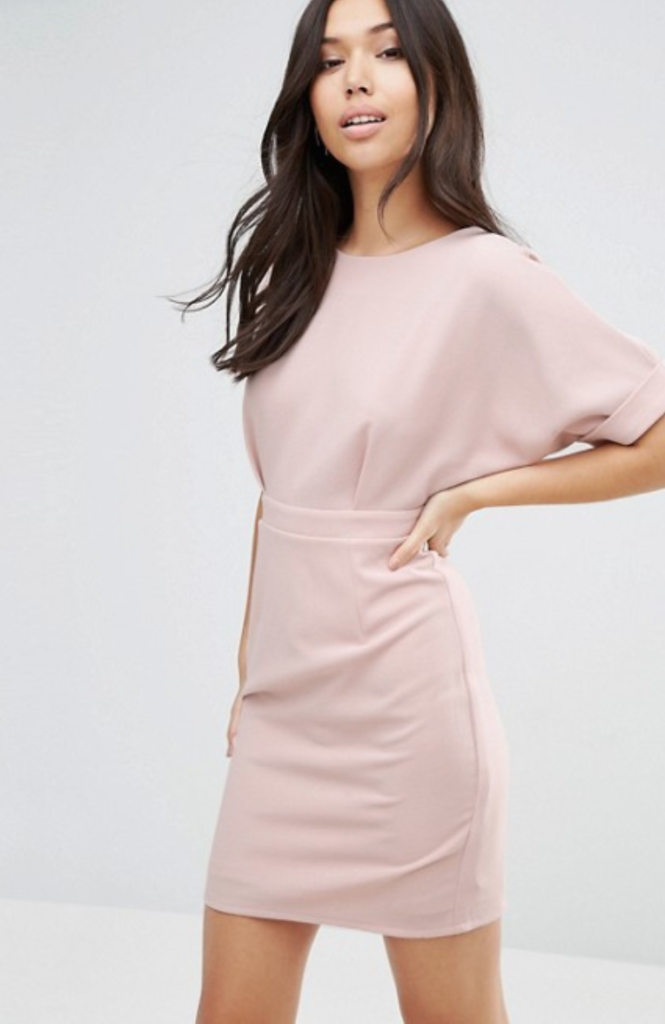 Vestido Mini Asos. Rosa claro. Costas em V.